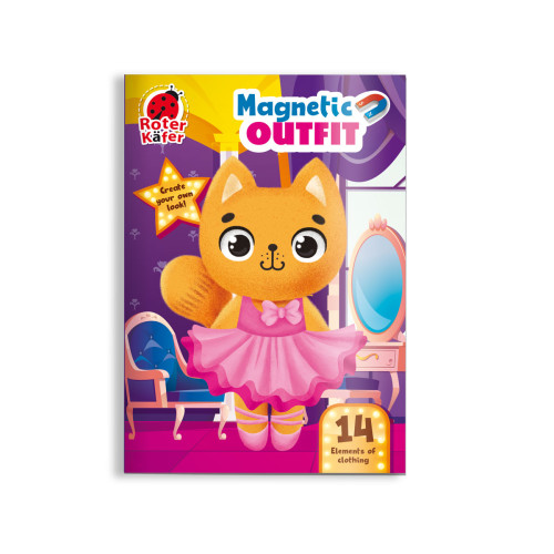The magnetic set includes a lovely kitten and bright clothes for him. Dress up the cat in a wonderful magnetic outfit and create your own stylish look