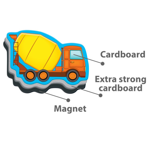 The set includes a magnetic board with a picturesque landscape. Children can play using the special magnetic board, or any other magnetic surface.