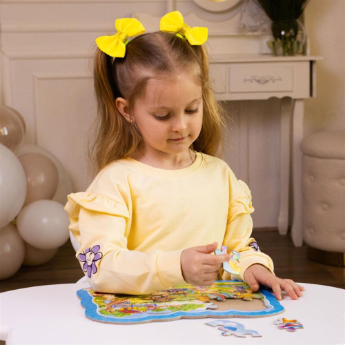 The pieces are made of high-quality certified cardboard, durable yet lightweight, and perfectly sized for little hands. All puzzle pieces fit snugly together.